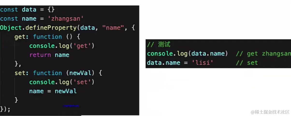 关于defineReactive方法,内部还是通过Object.defineProperty实现属性拦截