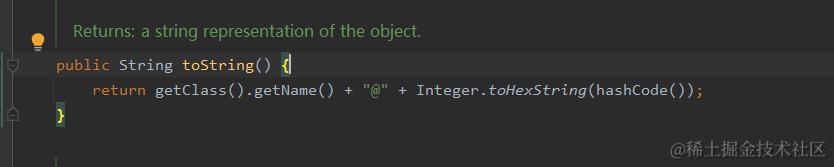 默认实现会返回类名@哈希码,源码实现如下: