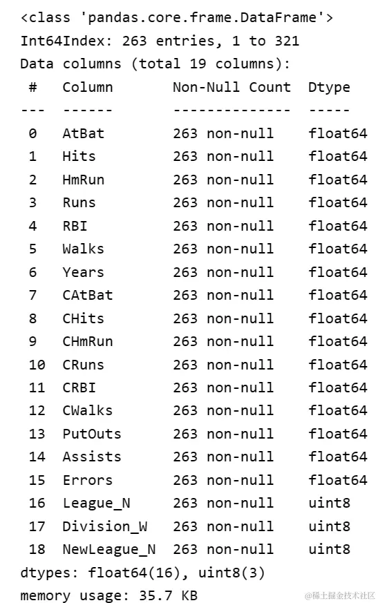 X_numerical = df.drop(['Salary', 'League', 'Division', 'NewLeague'], axis=1).astype('float64')