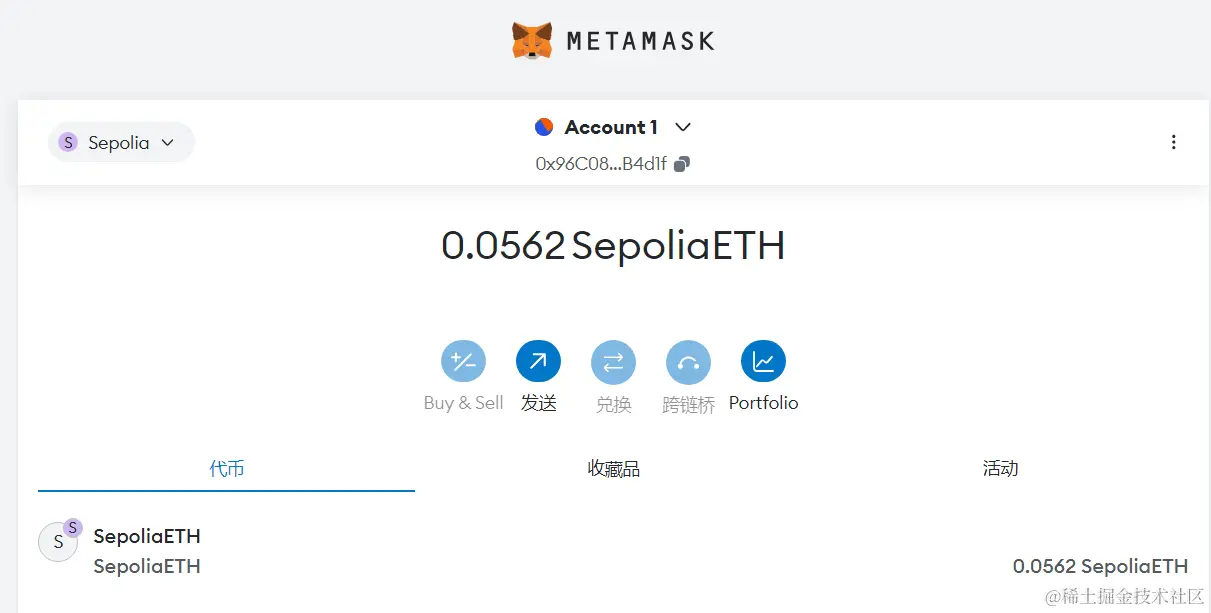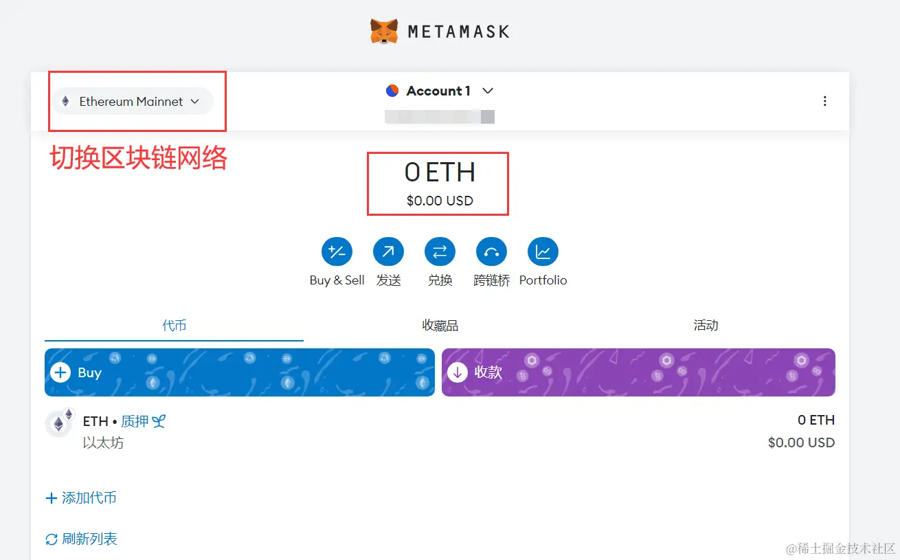 点开钱包查看,发现我们已经有一些ETH了: