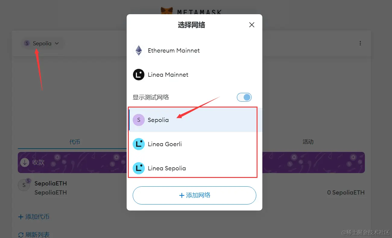 本教程不使用真钱,所以切换到测试网络。