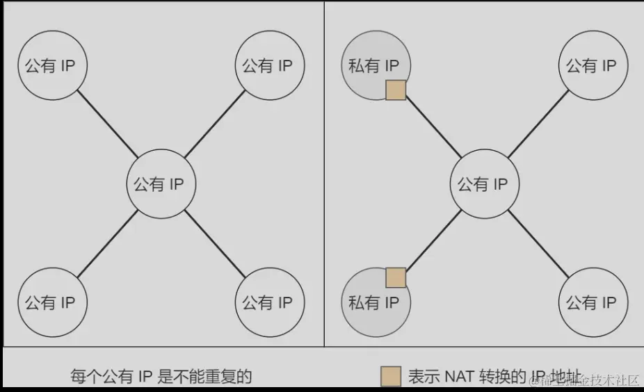 那不是 N 个私有 IP 地址,你就要 N 个公有 IP 地址?这怎么就缓解了 IPv4 地址耗尽的问题?这不瞎扯吗?