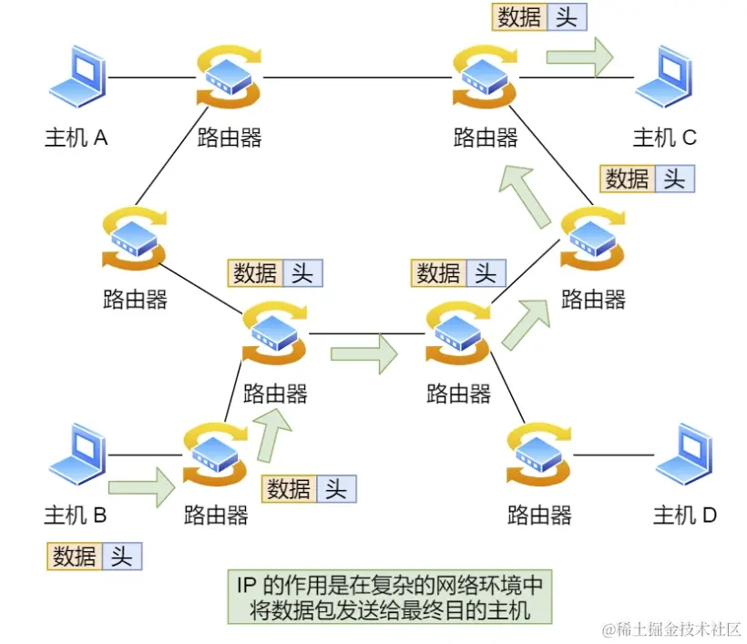 ip负责将数据包发送给最终的目的地址