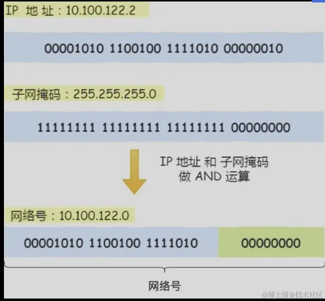 将子网掩码和 IP 地址按位计算 AND,就可得到网络号。