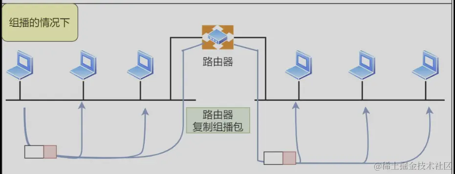 由于广播无法穿透路由,若想给其他网段发送同样的包,就可以使用可以穿透路由的多播。