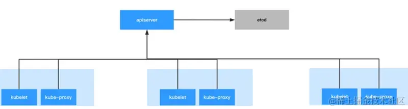 如果按照传统的思路,测试团队需要申请大量的虚拟机来组建 K8S 集群,但这无疑是成本非常高的选择,因为在实际项目中我们往往需要测试数百甚至数千台机器规模的集群。所以换一种思路,看一下 K8S 的集群架构: