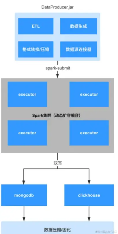 - 根据业务情况可以双写或者多写到多个存储系统中,并进行压缩和固化