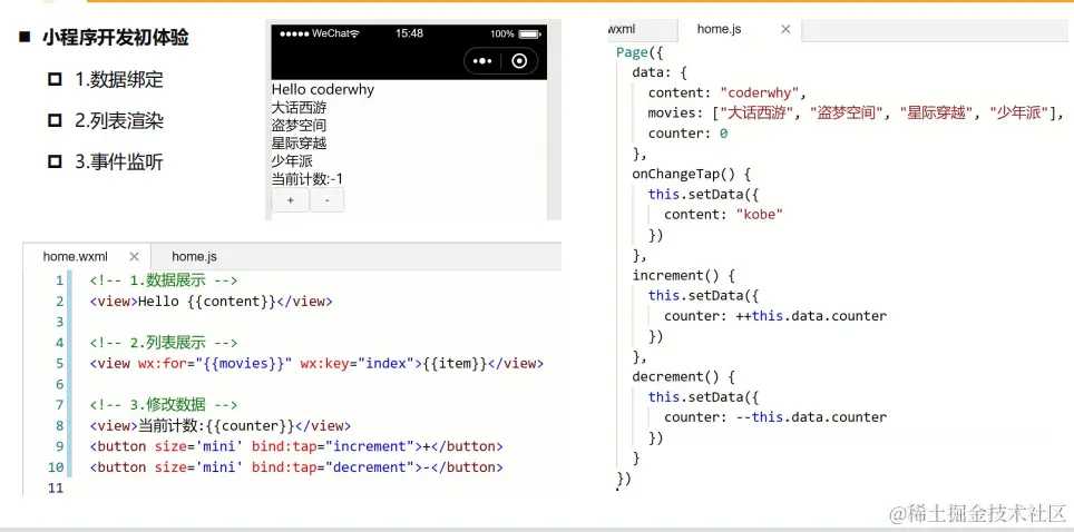 ✓ 主要技术包括:WXML、WXSS、JavaScript;