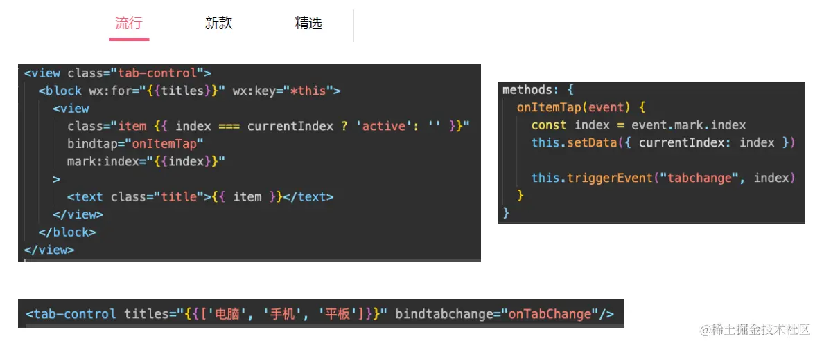 <tab-control titles="{{['流行', '新款', '热门']}}"/>