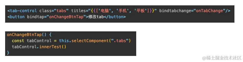 ◼ 可在父组件里调用 this.selectComponent ,获取子组件的实例对象。
