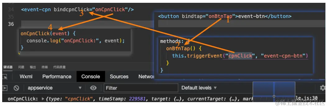 · 组件向外传递事件可以在组件内部通过this.triggerEvent将事件派发,页面可以通过bind绑定
