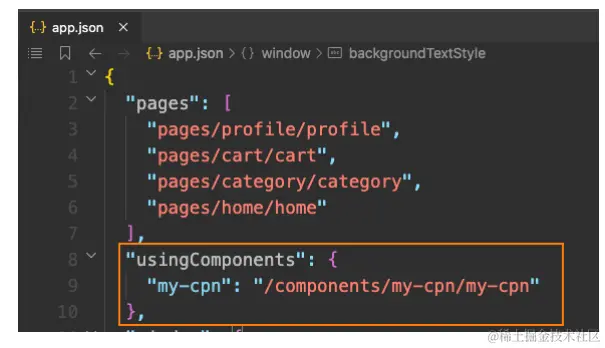 1.首先需要在 json 文件中进行自定义组件声明(将component 字段设
