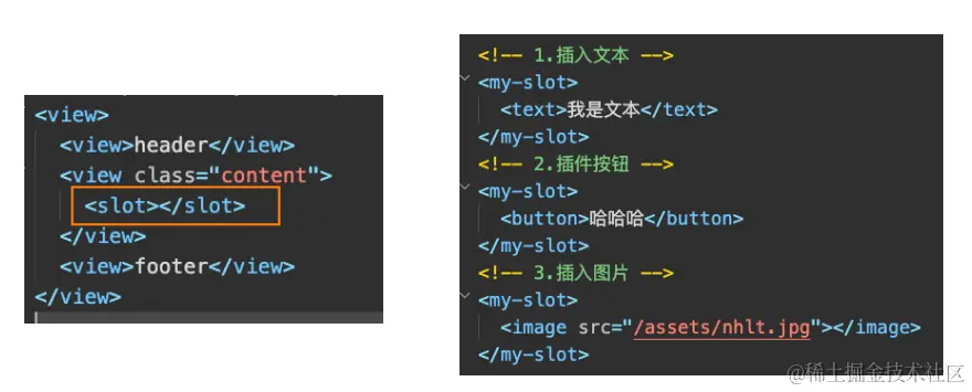 在不确定外界想插入什么其他组件的前提下,我们可以在组件内预留插槽