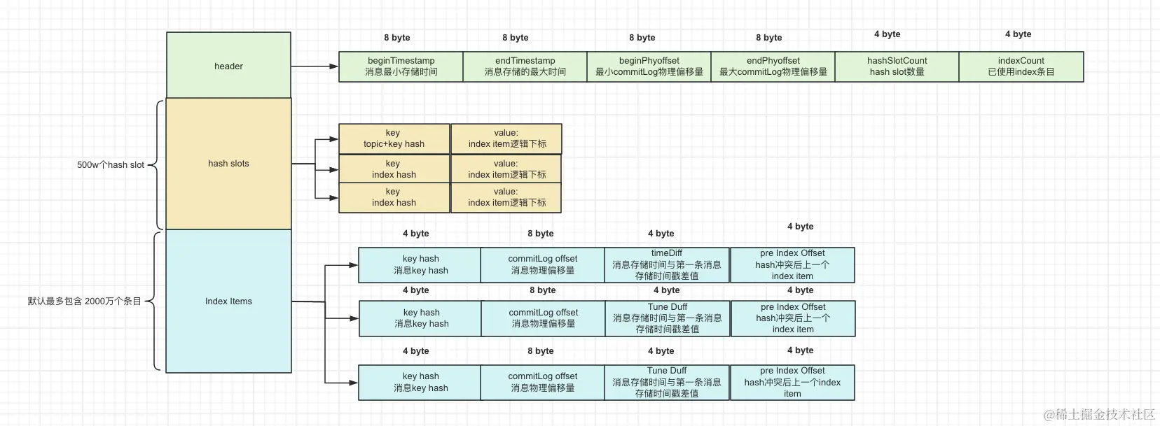 但是如果要基于比如我们设置的message key去或者UNIQ_KEY查询。很明显上面的存储结构就不支持了。