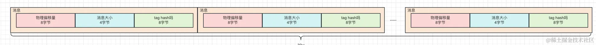 一条消息字节为 8 + 4 + 8 = 20,一个文件30w个。
