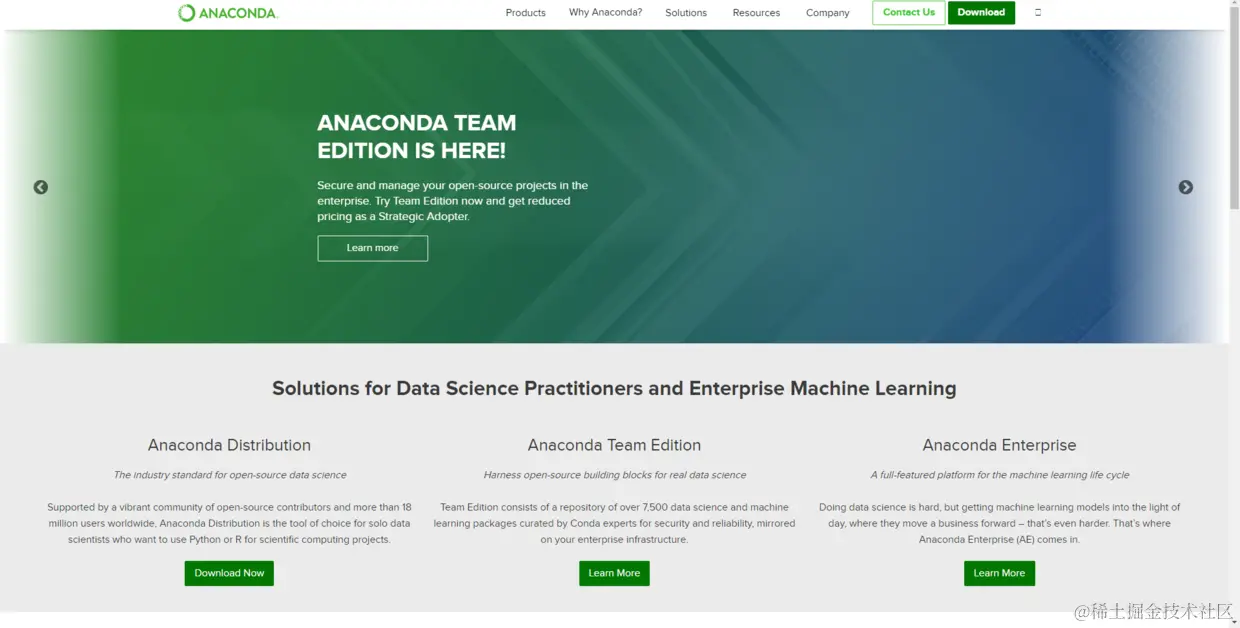 anaconda是第三方提供的,将python解释器以及常用的python库集成起来一起安装,另外还提供了自行开发的conda的python虚拟环境(比workon好用)。 anaconda官网
