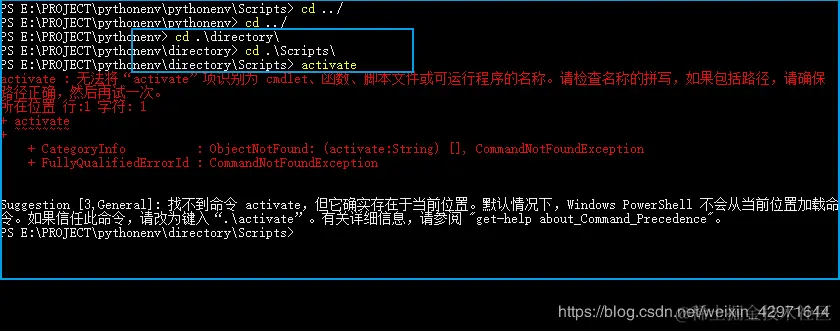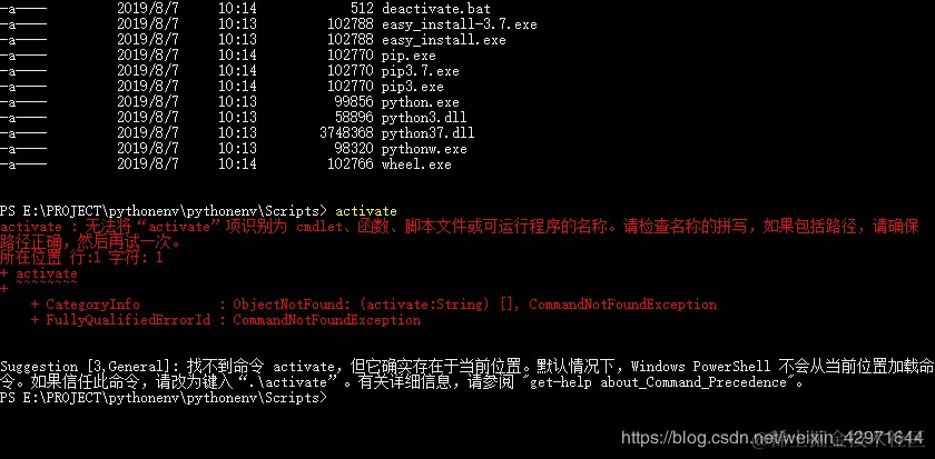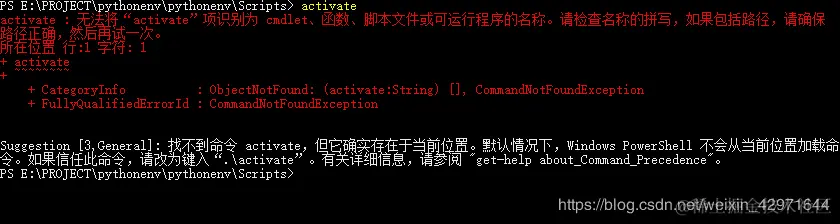 最后发现,而且还是需要使用.\activate才能进入,单纯的activate是进不去的。。