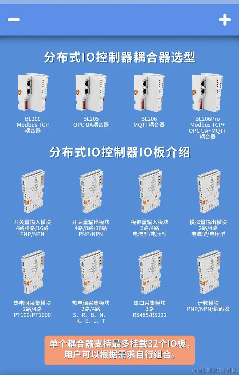 • 最大可接入32个 I/O 模块;