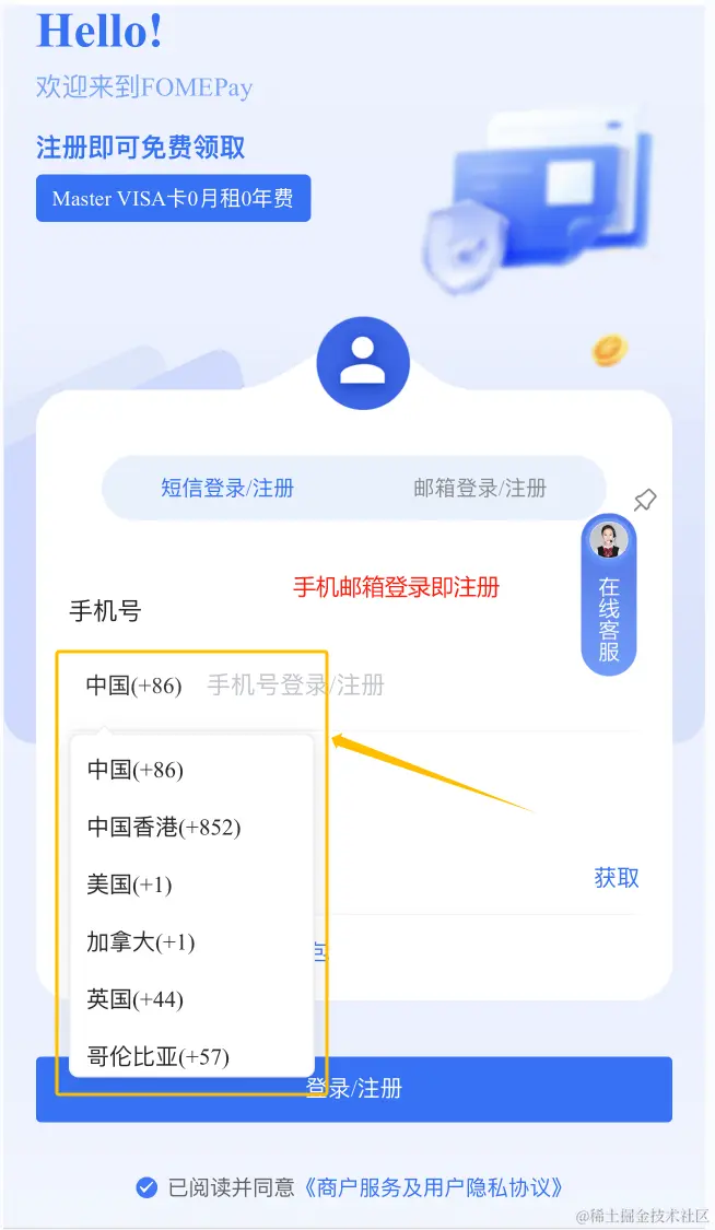 1、打开注册链接,手机/邮箱注册