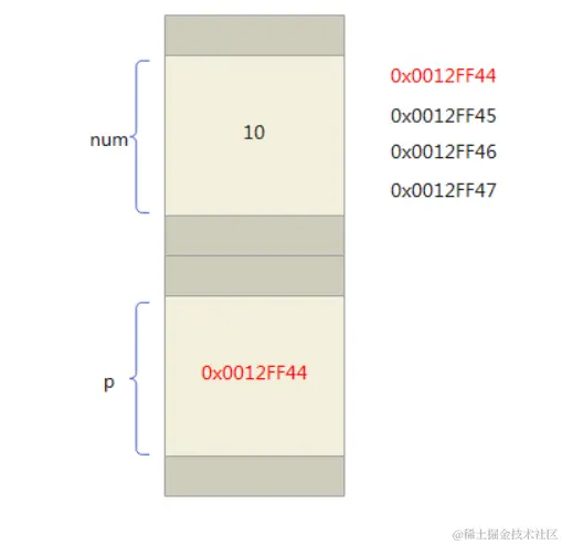 2、这里num的4个字节,每个字节都有地址,取出的是第一个字节的地址(较小的地址)。