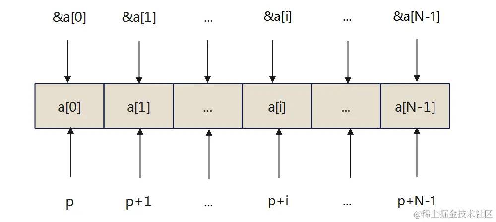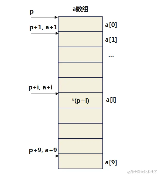 p+i和a+i就是数组元素a[i]的地址。或者说,它们指向a数组序号为i的元素。 -