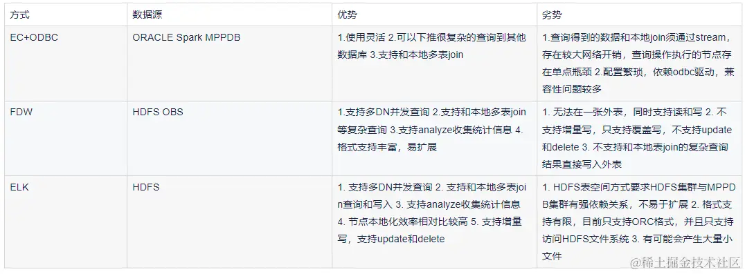 GaussDB(DWS)SQL On Anywhere针对大数据的文件系统的访问主要通过FDW或ELK机制(已停止演进)实现的,而跨数据库的访问主要通过EC+ODBC的方式实现的。