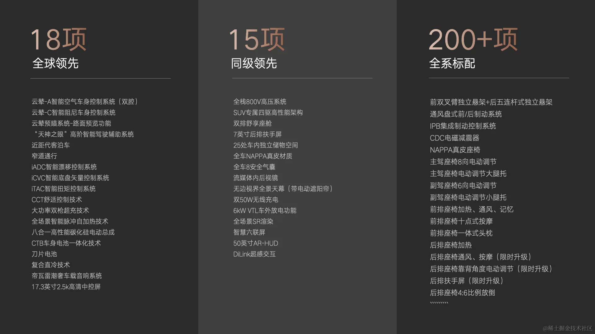 在内饰方面: 腾势 N7更是讲究,从每一个细节处体现出品牌对于舒适性和豪华感的极致追求。全车采用同级领先的Nappa真皮工艺,让每一座座位都仿佛是百万舒享的待遇,为驾驶者和乘客来极致舒适的驾乘体验。