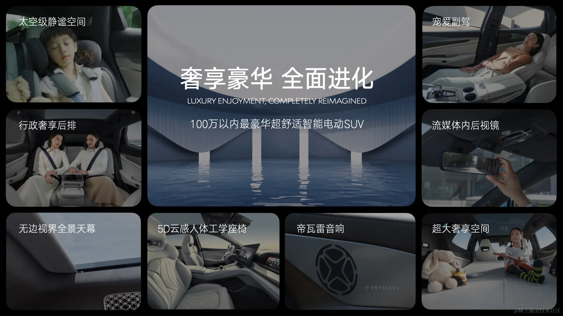 车身线条优雅而动感,大尺寸悬浮车标轮毂与逐光尾部设计相得益彰,呈现出一种独特的动感美学,运动气息扑面而来,百万级豪华感瞬间UP!同时,新增的西子蓝外观颜色更是将自然之美融入车身,为用户提供了更多个性化选择。