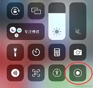 (2)之后下拉苹果手机的**【控制面板】,点击【屏幕录制】**按钮。