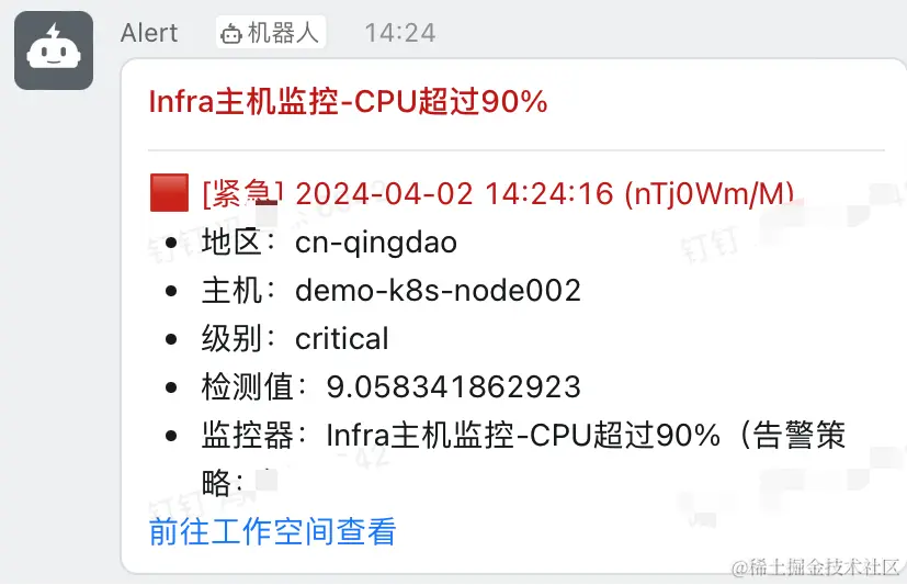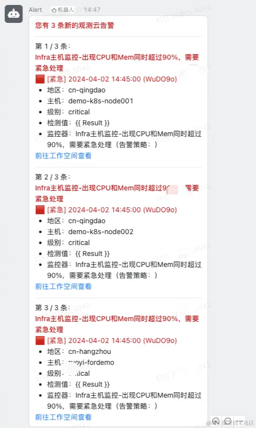 在钉钉webhook效果展示