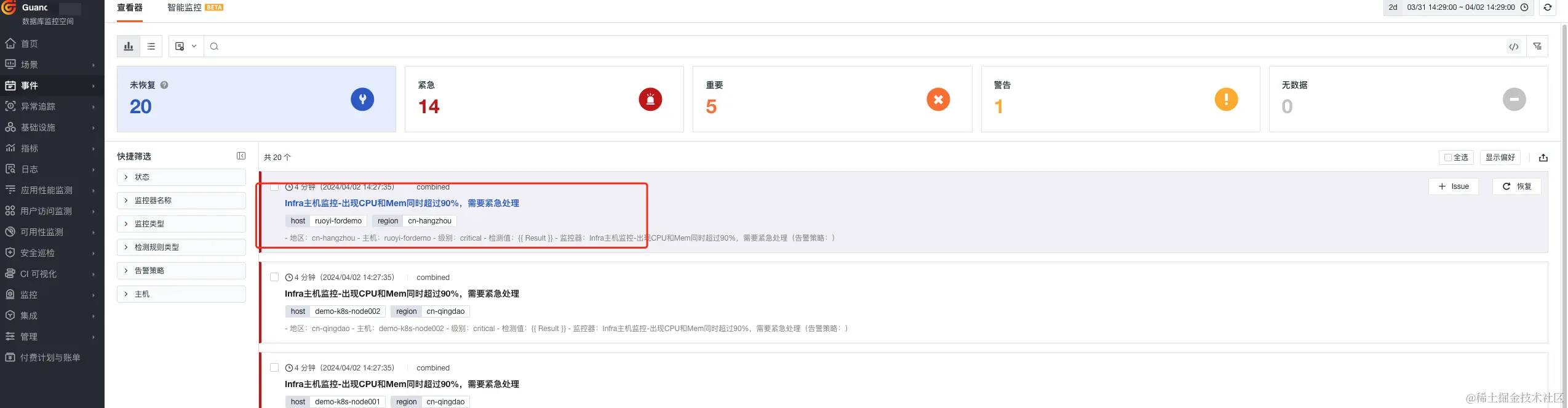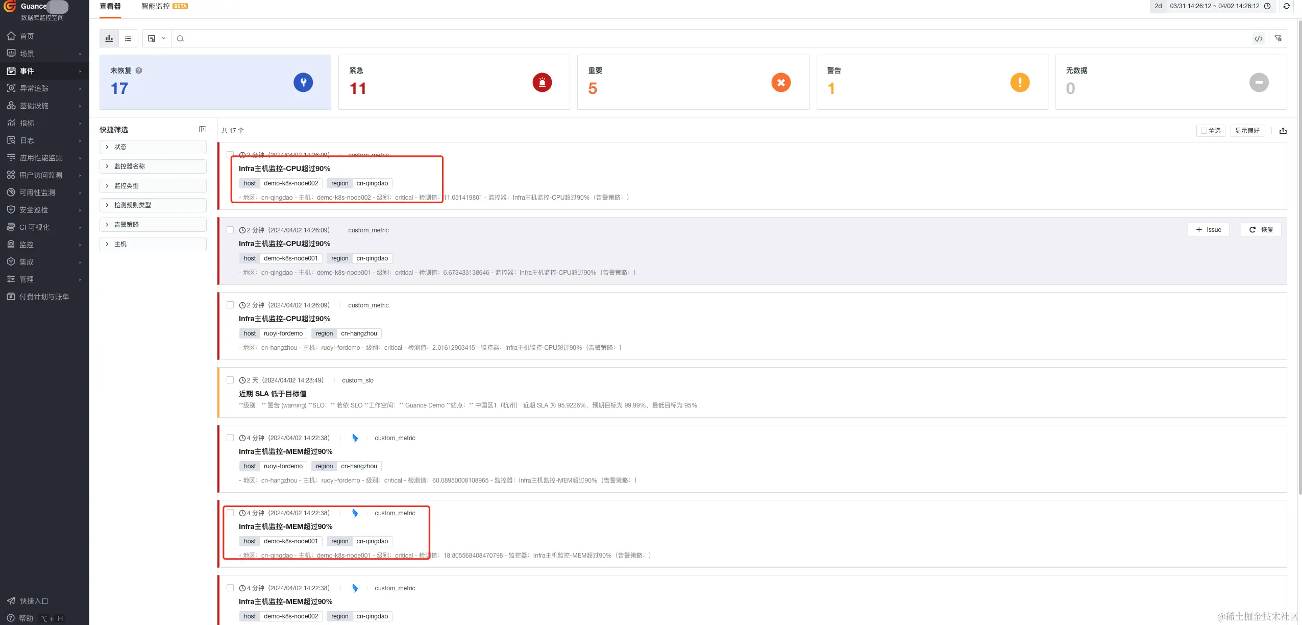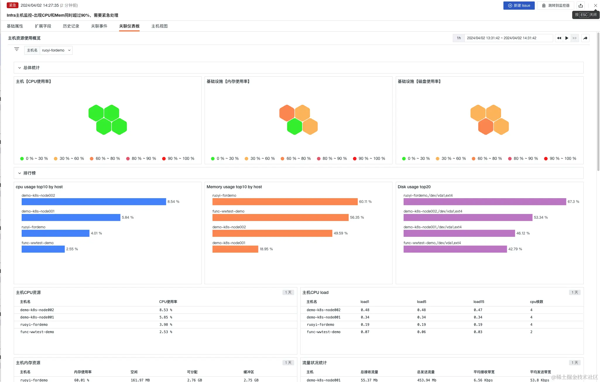 组合监控 Infra主机监控-出现CPU和Mem同时超过90%