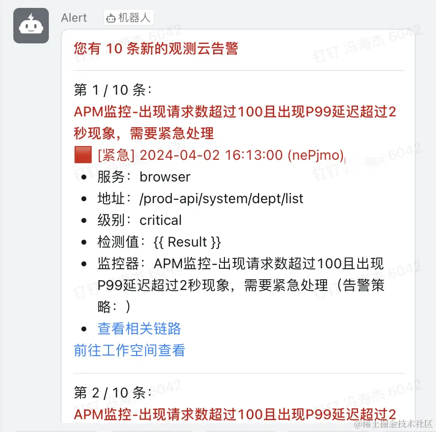 - 配置一下,接收人为钉钉一线运维团队