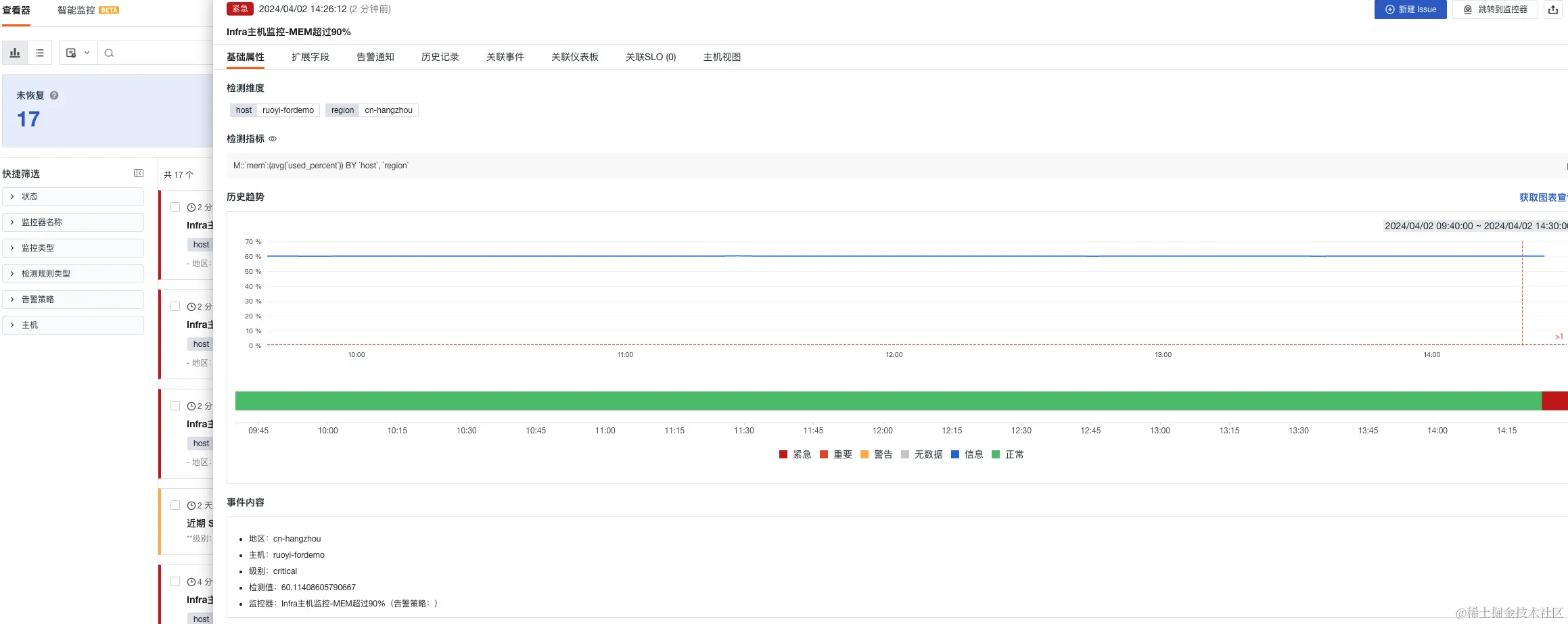 Infra主机监控-MEM超过90%
