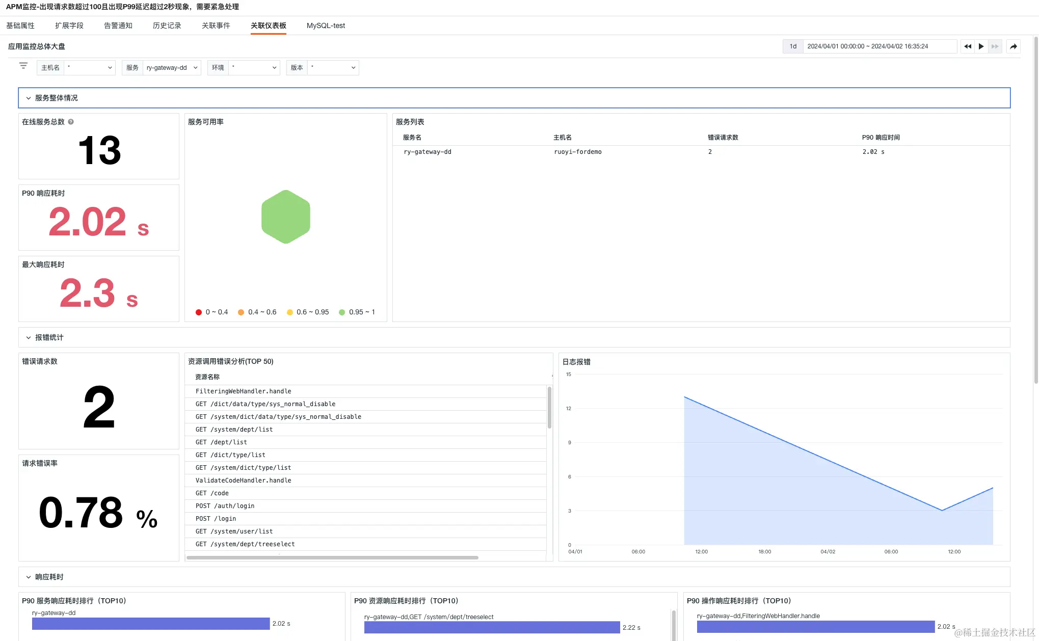 APM监控-出现请求数超过100且出现P99延迟超过2秒现象,需要紧急处理
