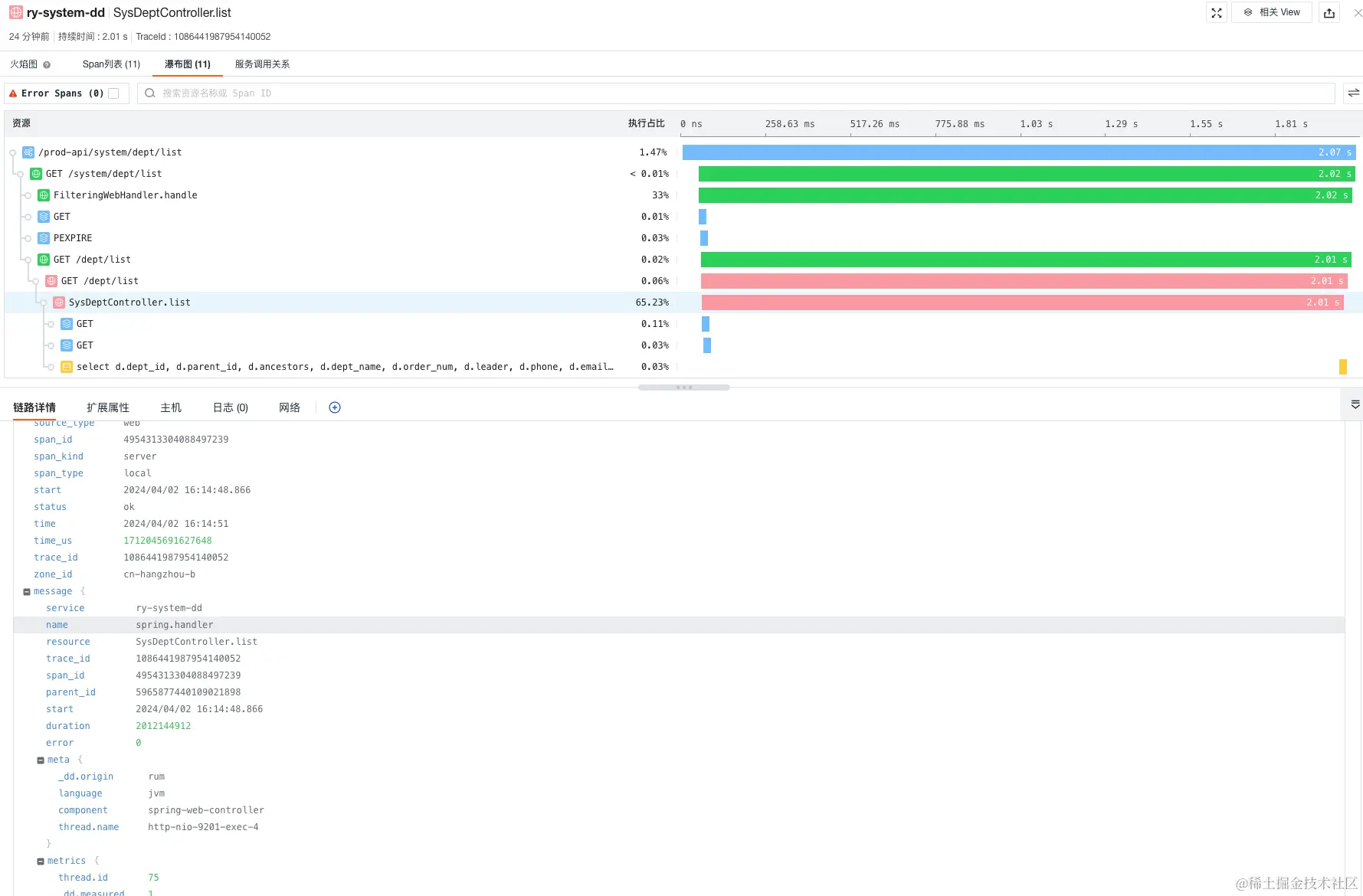 查看链路火焰图