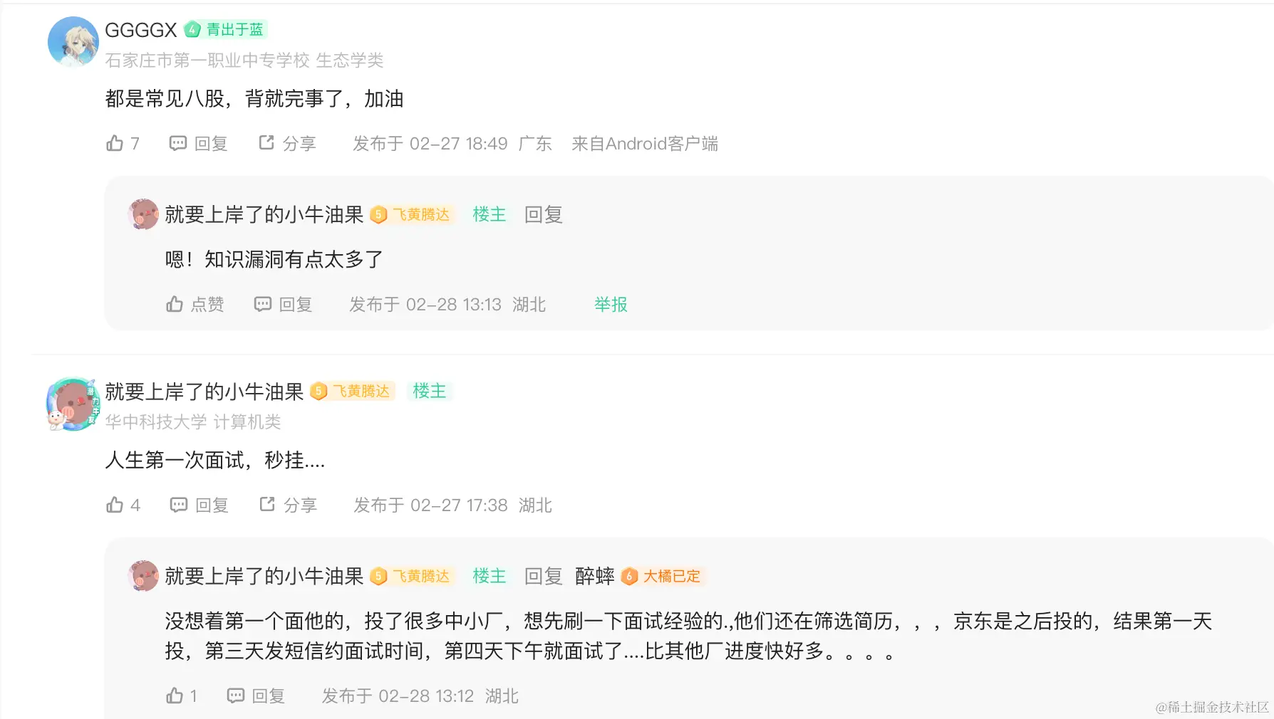这也是这位同学人生的第一次面试,直接秒挂了。其实也挺正常,毕竟缺乏经验。对于 Java 后端实习面试来说,这位同学面试遇到的问题已经非常简单了。