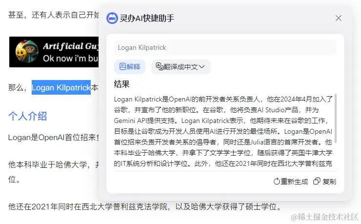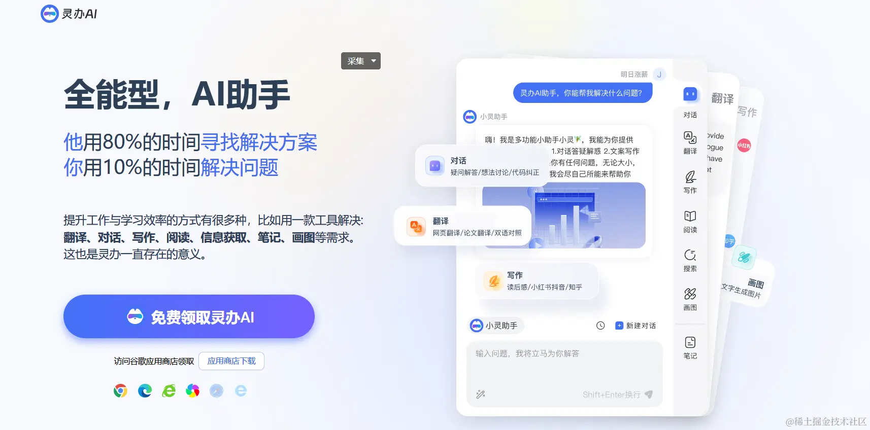 无论是需要翻译一段文字,翻译一个网页、改进一个句子、生成一个广告脚本还是创作一个故事,它都能提供智能的帮助。无需离开当前网页,你可以在任何时候使用灵办进行交互式任务完成。