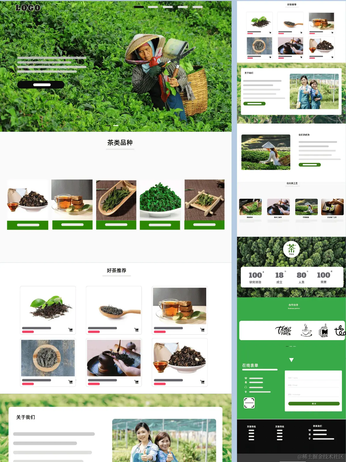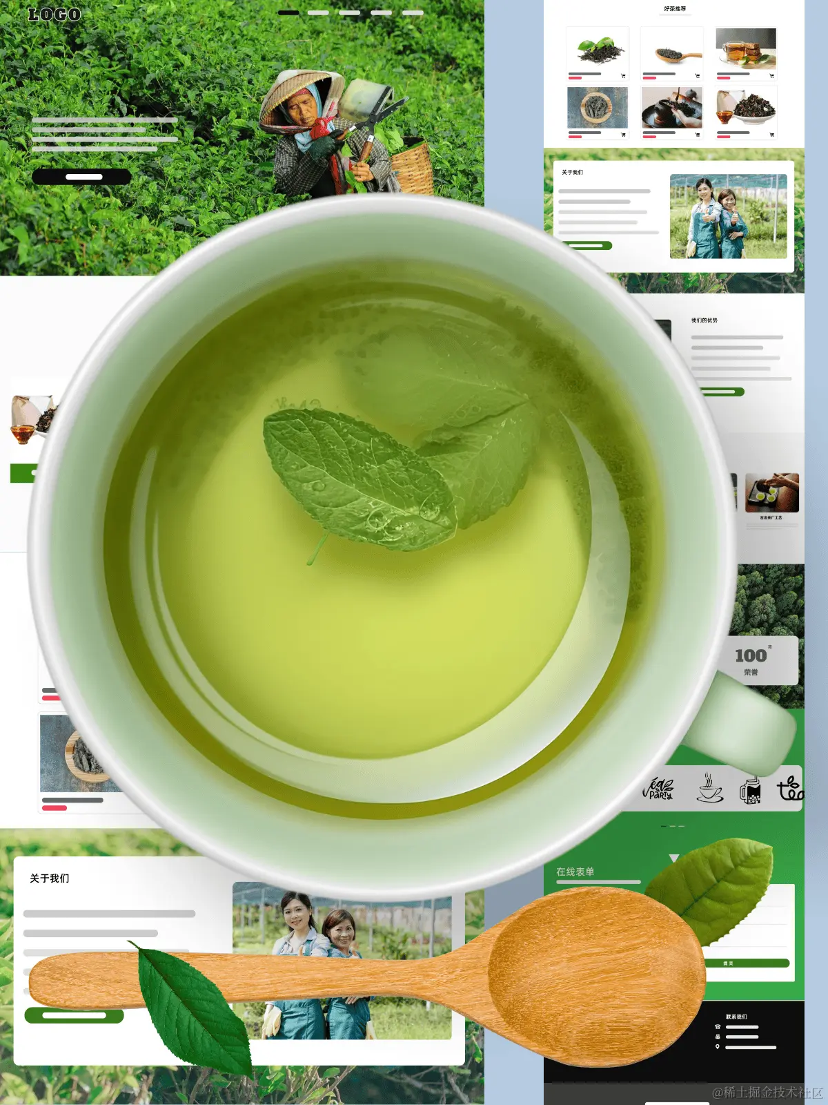 首先呢,我们想让这个网站一打开,就能让人感觉到那种清新的茶香。所以在设计的时候,我们用了很多绿色调,还有一些茶叶的图片,让人一看就觉得很舒服。