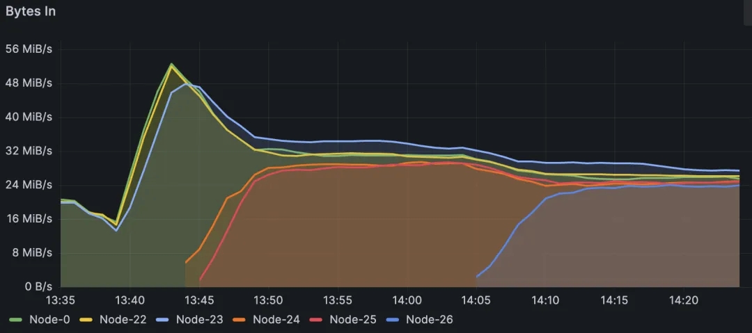 下图展示了使用上述数学模型进行的流量均衡调度效果(图源自 AutoMQ 内部 LongRunning 监控大盘):