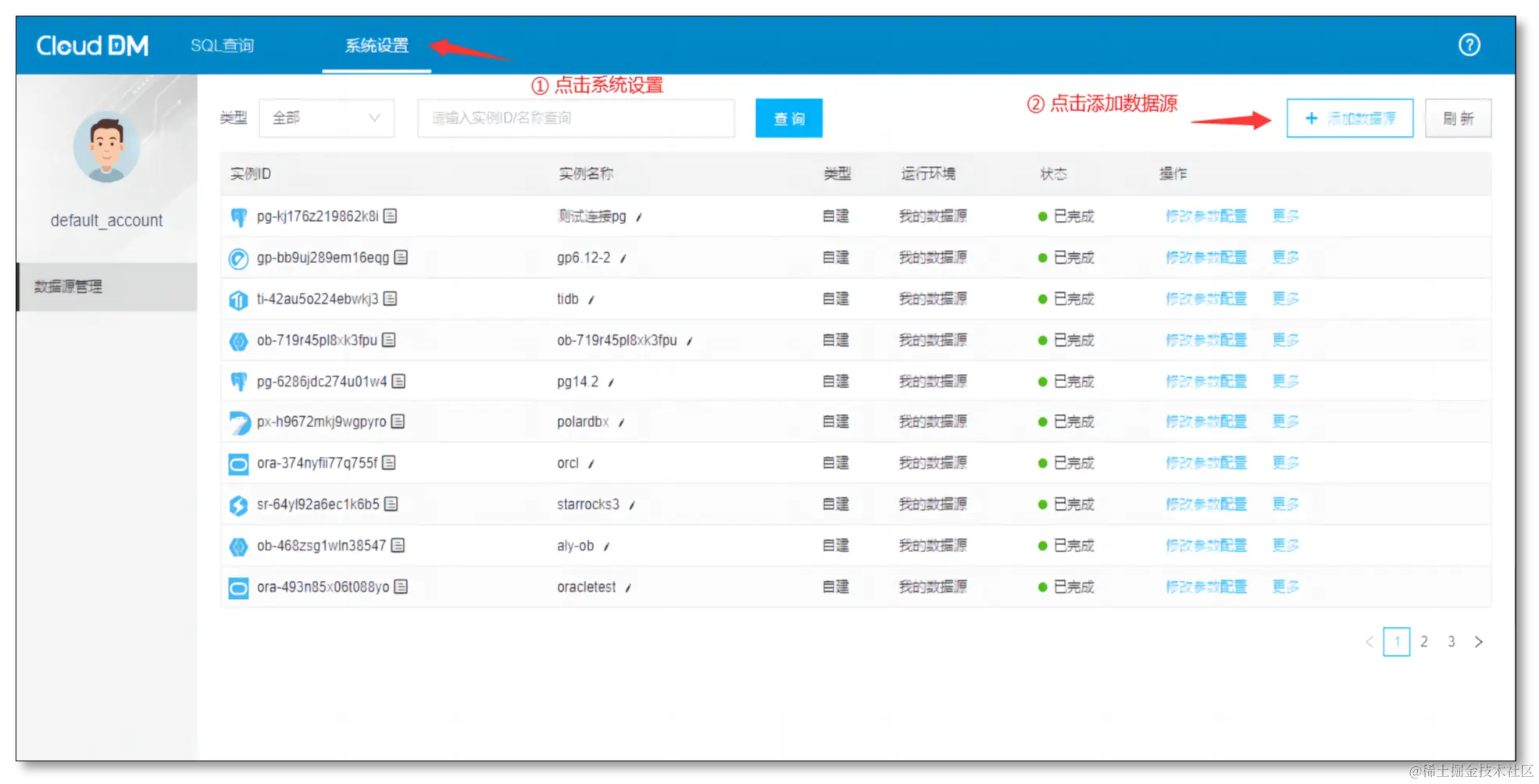 - 切换到系统设置栏,然后点击添加数据源