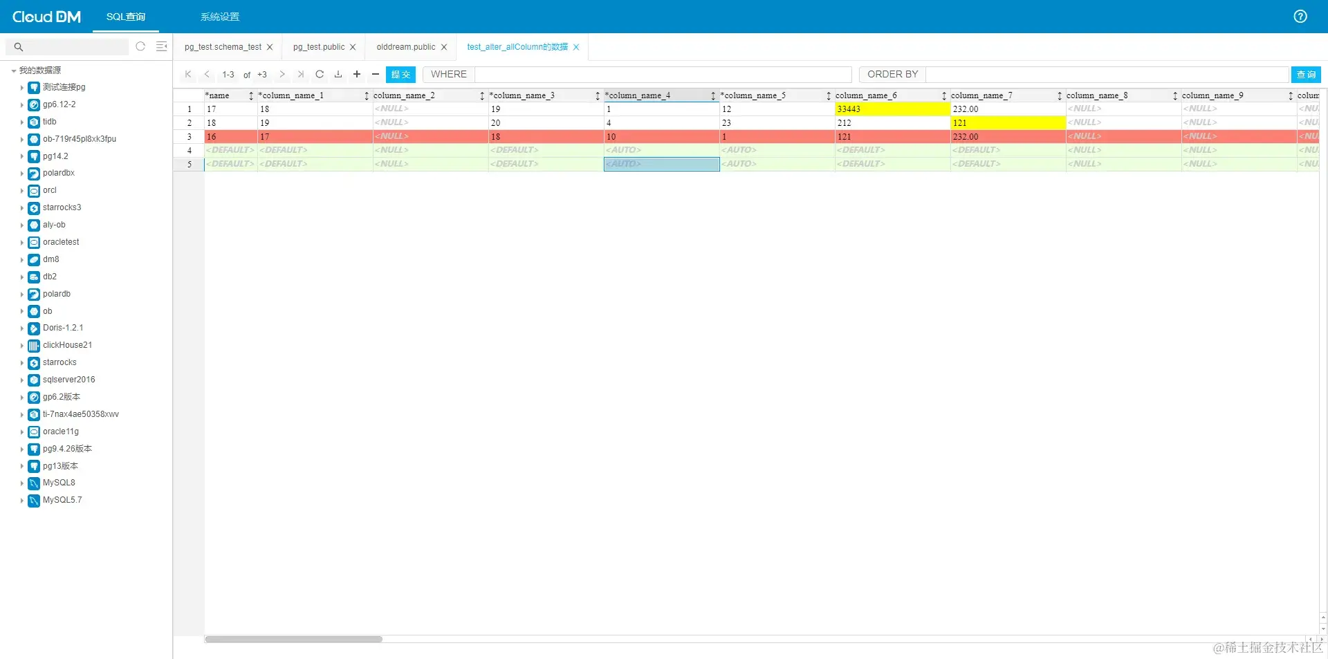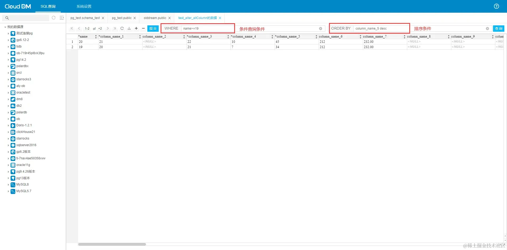 - 在 cloudDM 中,查询支持普通的分页查询,还支持拼接 where 条件查询以及排序条件