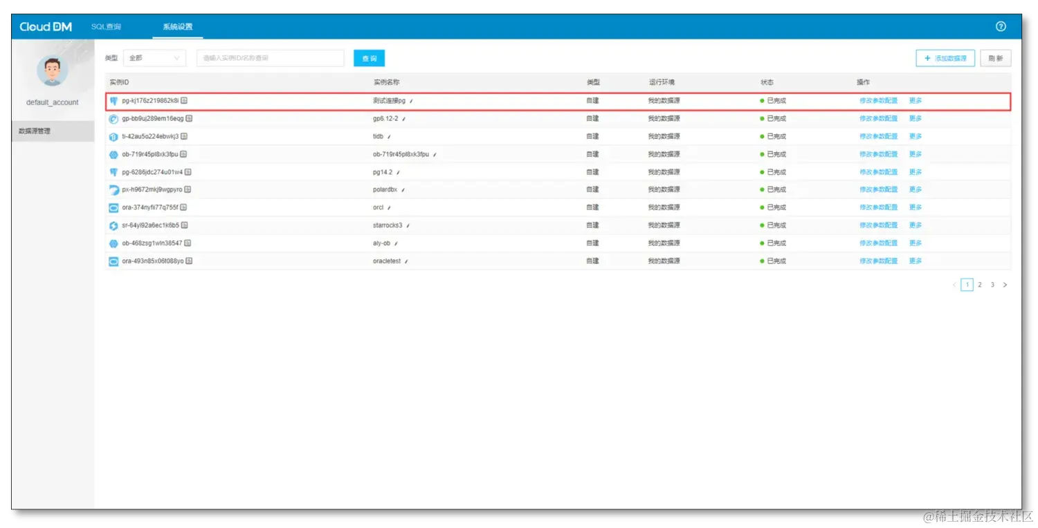 - 可以看到连接成功后,列表会显示出刚刚新增的连接,可以通过修改参数配置进行修改