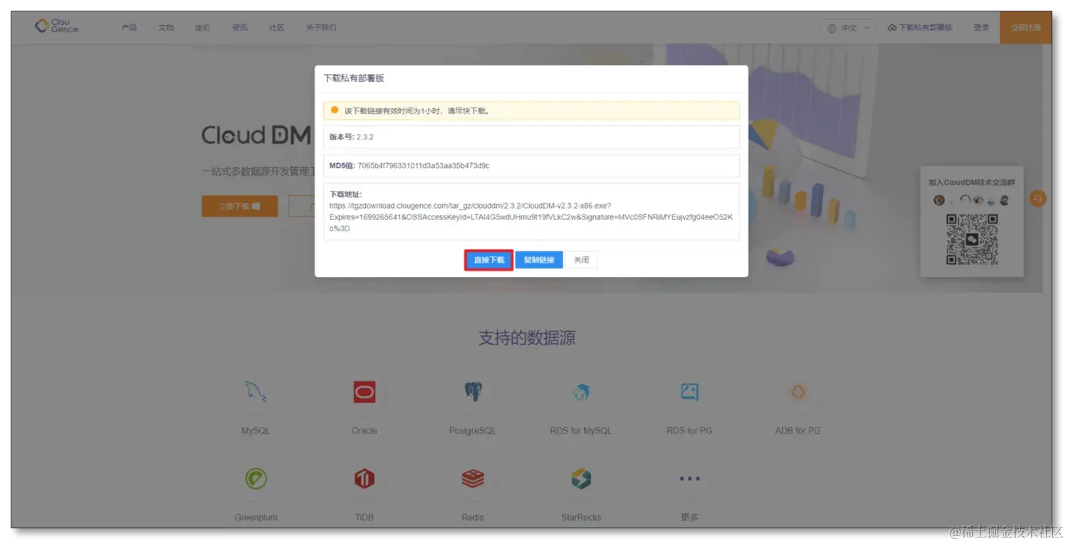 - 访问 CloudDM 官网(www.clougence.com/clouddm-per…),选择需要下载的版本和操作系统。
