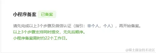 这四个小步骤中的小程序备案又有额外的分支步骤,正常来说,我们可以先完成: