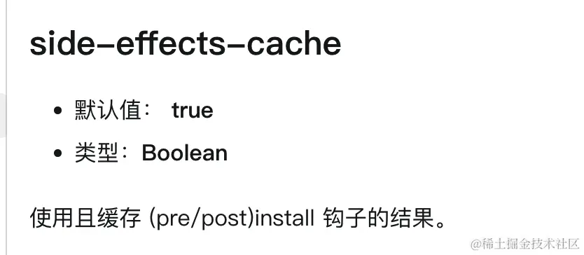 side-effects-cache用于配置是否缓存包的安装副作用。