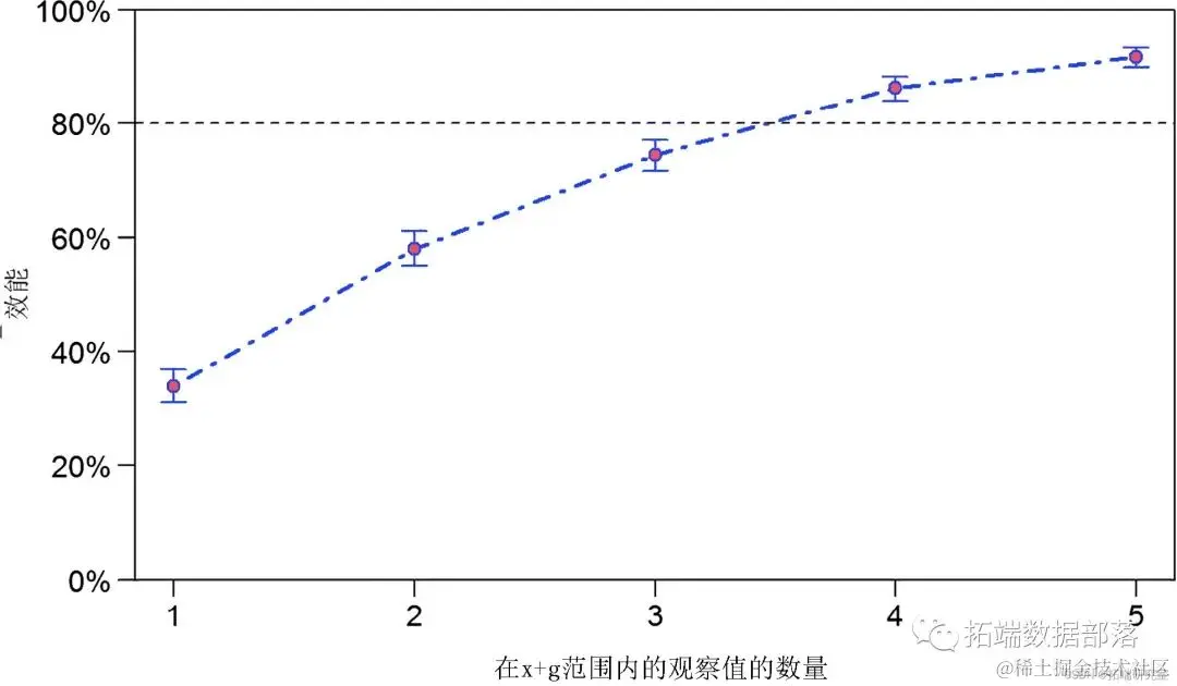 假设检验的功效定义为假设原假设为假,检验拒绝原假设的概率。换句话说,如果一个效应是真实的,那么分析判断该效应具有统计显着性的概率是多少?