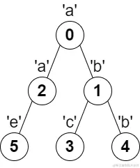 输入:parent = [-1,0,0,1,1,2], s = "abacbe"