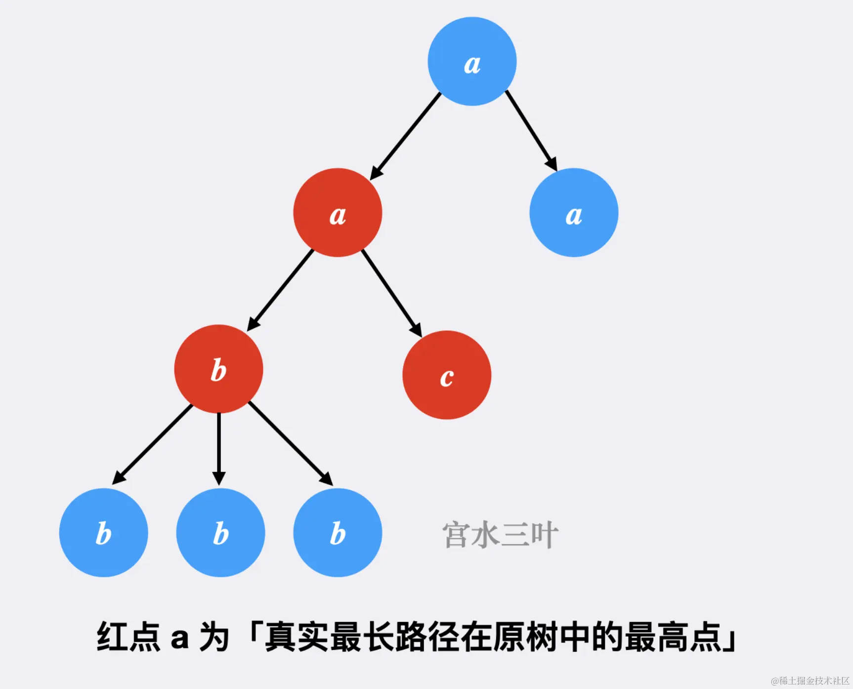 这是一个由子节点最长路径推导父节点最长路径的「自下而上」的推导过程。