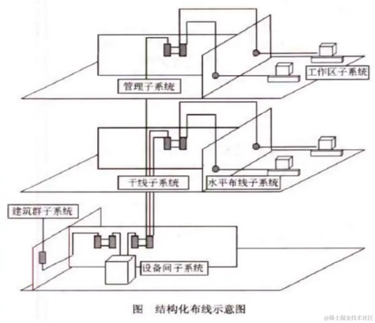 设备间子系统:该子系统是由设备间中的电缆、连接跳线架及相关支撑硬件、防雷电保护装置等构成。可以说是整个配线系统的中心单元, 因此它的布放、造型及环境条件的考虑适当与否,直接影响到将来信息系统的正常运行及维护和使用的灵活性。电话交换机、计算机主机 设备及入口设施也可与配线设备安装在一起。