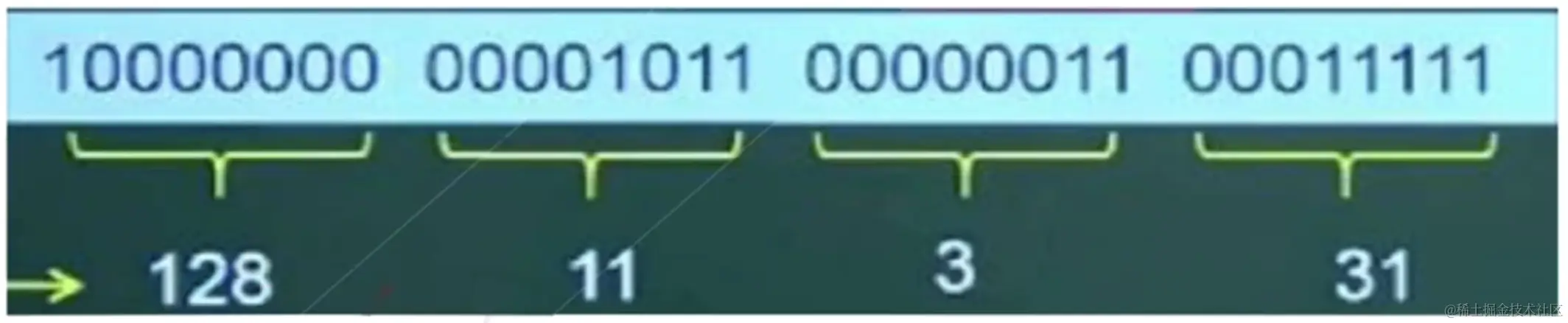 IP(IPV4)地址是一个32位的二进制数的逻辑地址,为了表示方便,一般会采用点分十进制方法来表示:将32位二进制代码每8位二进制转换成十进制,就变成了4个十进制数,而后在每个十进制数间隔中插入“.”比如128.11.3.31。